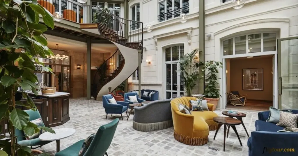 The Hoxton Paris is known for its stylish design and welcoming atmosphere. The courtyard café is especially popular with guests.