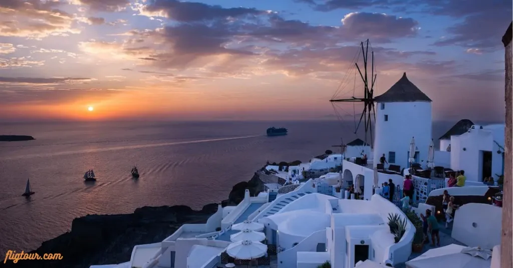 Oia Castle draws the largest crowd. However, Imerovigli offers dramatic views with fewer people. Fira’s cliffside bars create a lively atmosphere. Sailing tours provide a sunset from the water.